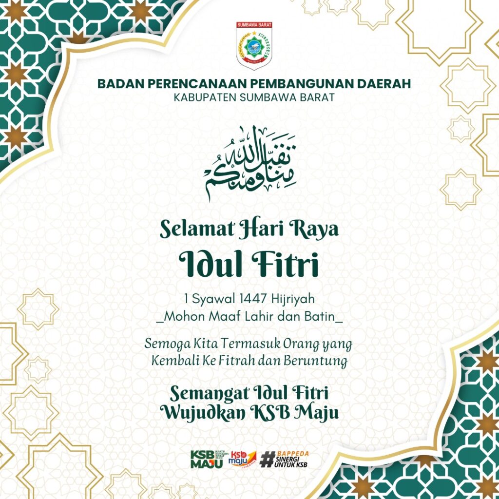 Bappeda Sumbawa Barat Badan Perencanaan Pembangunan Daerah (Bappeda) Kabupaten Sumbawa Barat Mengucapkan Selamat Hari Raya Idul Fitri 1 Syawal 1447 H /2026 M admin 19 Maret 2026 Related Posts:Sekretariat Dewan Perwakilan Rakyat Daerah (Setwan)…Pimpinan Dan Anggota Dewan Perwakilan Rakyat Daerah…Anggota DPRD (Dapil III) Kabupaten Sumbawa Barat, H…Sidang Paripurna DPRD, Bupati KSB Paparkan Pendapat…Sekretaris DPD Partai Amanat Nasional (PAN) - Ketua…Keluarga Besar Dinas Komunikasi dan Informatika… Post Views: 25 Post navigation Previous: Pimpinan Dan Anggota Dewan Perwakilan Rakyat Daerah (DPRD) Kabupaten Sumbawa Barat Mengucapkan Selamat Hari Raya Idul Fitri 1 Syawal 1447 H / 2026 MNext: DPRD KSB Salurkan Bantuan Darurat untuk Korban Kebakaran Alas Berita Lainnya Pemerintahan Sumbawa Barat Pemda KSB Sosialisasikan Budaya Kerja ASN, Terapkan WFO-WFH admin 16 April 2026 ATRBPN Ekonomi Sumbawa Barat Sosialisasi PTSL di Desa Seloto, Warga Didorong Aktif Daftarkan Tanah admin 14 April 2026 Hukum Polres Sumbawa Barat Sat Samapta Polres Bima Kota Sikat Sabung Ayam, Keresahan Warga Teratasi admin 13 April 2026