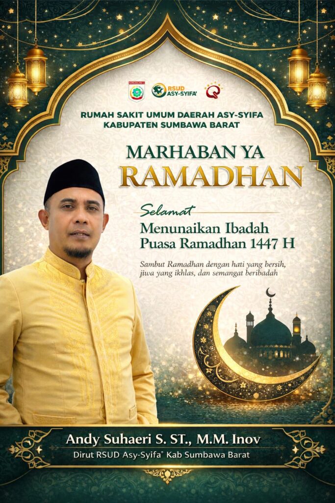 Iklan RSUD Asy-Syifa' Sumbawa Barat Direktur RSUD Asy-Syifa’ Kabupaten Sumbawa Barat Mengucapkan Selamat Menunaikan Ibadah Puasa Ramadhan 1447 H admin 9 Maret 2026 Related Posts:RSUD Asy-Syifa’ KSB Ditinjau RS Siloam Untuk Potensi…Paripurna LKPJ 2025, DPRD KSB Bentuk Pansus dan…DPRD KSB Dorong Optimalisasi RSUD Asy-Syifa’ untuk…Program KSB Maju di RSUD Asy-Syifa’ Beri Manfaat…Perkuat Layanan, RSUD Asy-Syifa’ Target Buka Poli…Bappeda Kabupaten Sumbawa Barat, Mengucapkan Selamat… Post Views: 27 Post navigation Previous: Wamen PKP Bahas Penataan Permukiman Maluk Bersama Pemda dan PT AMNTNext: Iklan Ucapan Selamat Hari Gerakan Satu Juta Pohon oleh Dinas Pekerjaan Umum Dan Penataan Ruang Kabupaten Sumbawa Barat Berita Lainnya Pemerintahan Sumbawa Barat Pemda KSB Sosialisasikan Budaya Kerja ASN, Terapkan WFO-WFH admin 16 April 2026 ATRBPN Ekonomi Sumbawa Barat Sosialisasi PTSL di Desa Seloto, Warga Didorong Aktif Daftarkan Tanah admin 14 April 2026 Hukum Polres Sumbawa Barat Sat Samapta Polres Bima Kota Sikat Sabung Ayam, Keresahan Warga Teratasi admin 13 April 2026